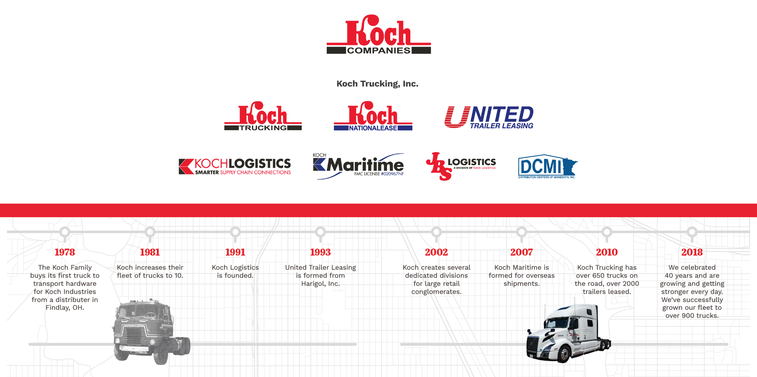 I helped develop, write, and implement the updated and refreshed brand guidelines for Koch Trucking. I worked with the operations and legal team to make this a reality. I designed a comprehensive guidebook for all things Koch Trucking. For the roll-out, I also worked directly with our agency to restructure and redesign our company website.